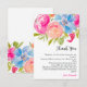 Bohemisk rosa blå blommig akvarell bröllopsfest tack kort