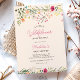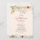 En liten vildblomma är på väg! Bohemiskt ängspastellblommor av vild blommor från sommarbabyduschen vår med blommor av söt vild land i boho-orange, rött, persikor, grönt löv, fern och annat, med en borstad manustypografi på en elegant som kan redigeras med en mjuk beige elfenbensbakgrund.