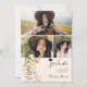 Klass 2024! Lägg märke till studenten med vår bohemiska vild för ängspastel blommor vår sommar 3 foton från studenten med blommor från söt vild land med blommor i boho retro party, röd, persika, orange grönt, fern med mera, med en borstad manustypografi på en löv som kan redigeras med en mjuk beige elfenbensbakgrund.