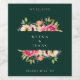Elegant akvarell färgrik bohemisk blomma och löv ram, personliga vin etiketter i smaragdgrön. Modern design stil mall ger linjer för namn, händelsedatum och plats.