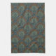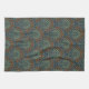 Den här kökshandduken har en kammussla fläkt mönster i jordens oliv grönt, rost på marinblått för ett bohemskt utseende.