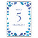 Bohemiskt vattenfärgsblått plattor bordsnummer