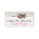 Bohemsk fjälpil & ros på rustikt vitt trä adressetikett