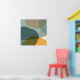 Den här geometriska abstrakten i snyggt har en kraftig och kraftig spridning av organiska former i en jordfärgspalett av brun, tealblått och senapsblått gult.