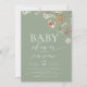 Boho All in One Wildblomme Sage Grönt Baby Shower Inbjudningar