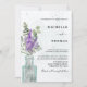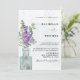 Boho bröllopsinbjudan, med sage grönt foliage, lavender och eukalyptus arrangerade i vintage flaska och målade i vattenfärg. Originalteckningar och unika teckningar skapat i studion för din speciella dag. Elegantens kalligrafi är svart. Du kan lägga till all information om bröllop.