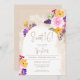 Söt botaniska Boho-sandans jordton och rosa, gult lila blommigt vattenfärg och pampas gräs Söt 16 födelsedagsfest inbjudan med pampas vattenfärg, bågformad med beige och med färgstarka trädgårdsblommor.
