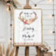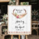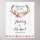 Boho Antler Blommigt Rustic White Wood Bröllop Sig Poster