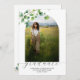 Bjud in din familj och vänner att hjälpa dig fira denna fantastiska milstolpe i ditt liv! Vår vackra moderna minimalistiska Boho Arch-examensinbjudan innehåller plats för två av dina bilder, dina personliga detaljer och en vacker kvist murgröna som pryder både framsida och baksida. Vi älskar den vita bakgrunden med svart handskriven typsnitt, men leta efter andra alternativ och tillbehör i vår examenskollektion.