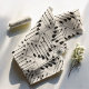 Detta Aztec-inspirerade mönster har en chic Boho vibe med en geometrisk arrangemang av pilar runt en blixtande sol form. Den här versionen av eleganten har ett svart mönster på valfri färg i bakgrunden (den benvita som visas här är valfri). Sök i ID748 om du vill se andra alternativ och produkter för färg med det här mönstren.