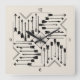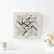Denna aztec-inspirerade väggklocka mönster har en Boho-vibe med en geometrisk arrangemang av pilar runt en blixtformad sol. Den här moderna fyrkantiga versionen har ett enkelt svart färg-schema på färgen som du väljer (den gråvita som visas här är valfri). Sök i ID748 om du vill se andra alternativ och produkter i färg med det här mönstren.
