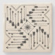 Den aztec-inspirerade sten som underlägg mönster har en chic Boho-vibe med en geometrisk arrangemang av pilar runt en blixtande sol-form. Den här moderna fyrkantiga versionen har ett enkelt svart färg-schema på valfri bakgrundsbild färg (den benvita som visas här är valfri). Sök i ID748 om du vill se andra alternativ och produkter för färg med det här mönstren.