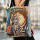Personlig till väskan med bohemisk konstnärlig utformning med en katt sitta ovanpå en hög av bokar. Kaffet, katten och bokar i totepåsen är vackra för en kattälskare eller för någon som kärlekar kaffe och läser bokar.