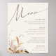 Boho Autumn Wildblomma | Beige Bröllop Menu-tecken Poster