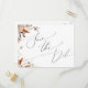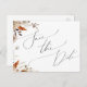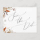 Vi presenterar vår fantastiska boho-höstblomma | Bevara vykortet, som innehåller en enkel och modern utformning som återspeglar naturens skönhet. Med pressade vattenfärgsblommor och terracotta löv fångas kärnan av oktober månads brända orange, och man skapar en minimalistisk men klassisk design som utstrålar värme och charm. Utformningen har en liten elegans som inspirerar till en känslig vintage, där grönt löv, rost kopparaccenter och blommigt jordtoner skapar ett unikt och oförglömligt stil. Förbered dig på din speciella dag med en produkt som ger en minimal men unik design och som skapar en plats för en verkligt minnesvärd upplevelse av bröllop. Kontakta oss med frågor om utformningen, och låt oss hjälpa dig att göra bröllop till dina drömmar.