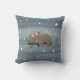 En kudde med ett matematiskt mönster för skogen med en illustration av en björnklumpa i baby på träd gren, omgiven av vattenfärg, inspirerad av blå bakgrund och stjärnor. Anpassa namn. Björnen bär en blomma krona.