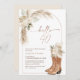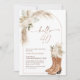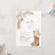 Boho Beige Blommigt Boots Hej 40:e födelsedagsinbjudan 40:e födelsedagsinbjudan med en cowgirl-kängor, underbara beige blommigt-arrangemang, modern kalligrafi-rubrik och bågform. Perfekt för någon som tittar för neutraltens färgad westernt tema för 40-årsinbjudan.