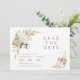 Boho Beige Grönt Blommigt Spara datumkortets bohemiska blommigt med pampasgräs, spara datumkortet med två vackra blommigtar för vattenfärg. I den här designen finns även ett foto på baksidan som kan tas bort. Det här datumet är idealiskt för ett par som tittar en elegant som är inspirerad av bohemiet att spara datumkortet.
