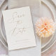 Modern Arch ram, spara datumfotokortet. En minimalistisk typografi utformar stil-mallen med beige typografi på mjuka sand färg-bakgrunder.