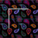 Boho paisley mönster, stor upprepning med lila, burgundisk, guld, periwinkle blue på svart bakgrund.