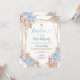 Boho blå och guld blommig dop inbjudan