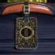 Chic svart och guld monogrammat bagagemärke för henne. Elegant, bohemiske stil. Vackra blommigten mandala som ser ut som guld-folie täcker framsidan på en svart bakgrund. Monogrammed namn i guld-nyansen, som teckensnittet stil kan ändras till eller färgen text, centreras på en guld-effektcirkel med svart och blanka. Baksidan har en svart bakgrund med faux-guld-folie som kontroverterar upptill och grund. Anpassade textmall på baksidan om du vill lägga till mobilare nummer eller annan kontaktinformation. Snyggt och trendig bagagemärke för henne.