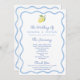 Den här mjuka och mejeribaserade utformningen av bröllopsprogrammet har ett trendig boho hand plockade som vågigt ljusblått gräns med en enda vattenfärgscitron på varje sida.