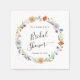 Boho-inspirerade servetter för bröllopsfest med en akvarellkrans av vilda blommor och "Bröllopsfest" i ett elegant svängigt typsnitt.
