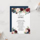 Boho Blommig Burgunder Röd Bröllopsplatskarta kort