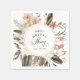 Denna underbart feminina och unika boho-stil bröllopsfest servett i papper har en frodig neutral färgskala i beige, grönt, persika och nyanser av rosa och terrakotta. De vackra akvarellblommorna har en naturligt inspirerad organisk känsla. En rund ram med guldfärgade detaljer ger elegans åt designen. Anpassa texten med dina evenemangsuppgifter. Servetterna finns i tre storlekar: visas här i storlek cocktail; finns även i storlek lunch och middag.