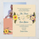 Vi presenterar vår boho-inspirerade formella bröllopsinbjudan, där modern elegans möter botanisk skönhet. Med nyanser av persika, gul och dammig blå, prydd med ömtåliga akvarell rosa blommor och glada solrosor, fångar denna inbjudan kärlekens väsen. Tillägget av ett guldkardelshjärta tillför en touch av sofistikation, medan trendig handskriven kalligrafi ger en modern charm. Komplett med en QR-kod för RSVP, webbplatsinformation och ett fängslande foto av paret, lovar denna inbjudan en oförytterlig firande av kärlek och enhet.
