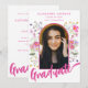 Boho Blommig Foto Ark Rosa Skrift Examen Fest Inbjudningar