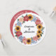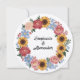En blomsterkrans omger makarnas namn på framsidan och består av solrosor, ömma peonior och "glöm-mig-inte" myosotis.