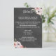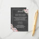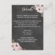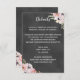 Boho bröllopsdetaljkort med rosa akvarellblommor på svart kritskriftsbakgrund.