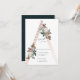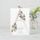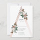 Ett romantiskt bröllopsinbjudan svarskort med vackra vintage botaniska illustrationer ovanpå en rose gold strukturell pyramid.