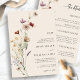 Denna stilrena och eleganta bröllopsinbjudan med allt-i-ett har vackra handmålade akvarellvilda blommor arrangerade som en vacker krans med bröllopsdetaljer på baksidan. Hitta kompletterande produkter i Tan Boho Wildflower Bröllopskollektion.