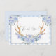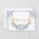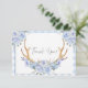 Tack för ditt kort | BOHO Baby Shower Tack Blue for boys - Pavisserligen Blommigt Ro Spray set off by a gullblue gingham - central design för BOHO Antlers dekorerat med blåa blommor - färg koordinerat baksidan av inbjudan - Originalteckning skapat för JustCards™ av © WhimsicalArtwork™ Detta är en del av ett matchande babystövel