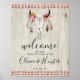 Boho Blommigt Antlers Cow Skull Välkommen Bröllop Poster
