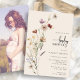 Den här inbjudan till babydusch för snyggt och elegant innehåller fantastiska, handmålade, vildblommor med vattenfärg som ordnats som ett vackert kalligrafiskt skript för bouquet och elegant. Baksidan innehåller ett foto för anpassning. Sök efter matchande objekt i Boho Wildblomma Baby Shower Collection.