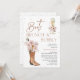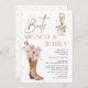 Boho Blommigt Boot Brunch Bubble Inbjudningskort för möhippan Boots brunch och bubblor möhippas duschinbjudan med en cowgirl-sockel, champagneglas, härliga blommigtar, modern kalligrafkurs och faux guld-punkter. Den här bruden och bubblan inbjudningskort för möhippan ligger i en bohemisk stil.