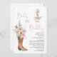 Boho Blommigt Boot Boot och Brunch Inbjudningskort för möhippan Boots och brunch inbjudningskort för möhippan med en cowgirl-sockel, champagneglas, vackra arrangemang för blommigt, modern kalligrafkurs och faux guld-punkter. Den här bruden och inbjudningskort för möhippan ligger i chicen stil.