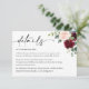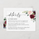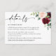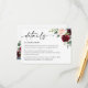 Specifikationskort för boho Burgundy och Bröllop för blommigt. Detta kort kännetecknas av boho burgundy och ro och blommor med två moderna högklassigt typsnitt som formar trenderna för nuvarande och framtida festliga händelser.