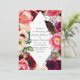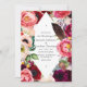 Boho-blommigtens bröllopsinbjudan med peonblommor och anemonblommor, grön och fjädrar i accenter av burgundplommon och anpassade av rosa i enlighet med dina önskemål.