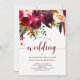 Trendigets bröllopsinbjudan innehåller söt vattenfärgblommor i klara nyanser av marsala, vin, djup grönt, rött och lila och matchar modern typografi.
