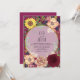 En rik och romantisk boho-bröllopsinbjudan med handmålade blommigtar i djup burgundi, rosa, solrosblomma och gult mot en stark rosa. Den här eleganten blandar emellertid rustik design med sofistikerad blommigt-skiktning - perfekt för fallbröllop eller trädgård firande. Med varma toner och fet blommigt ram fångas både vita och raffinerade vibes i den här inbjudan. Fullständigt anpassade med din händelseinformation.