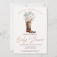 Boho Blommigt Cacti Boot Baby Shower-inbjudan Boho blommigt and cowgirl babydusch-inbjudan med blek blommigt och cactus arrangemang, cowgirl boot boot och a modern calligraphy title.