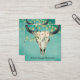 Boho Blommigt Cow Skull, String Ljus på turkos Fyrkantigt Visitkort