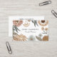 Modern vismisk blommigt boho-affärskort med jordbrun och grönt blommigt inslag och löv. Lägg till kontaktinformation och social-media på baksidan av kortet, på vitt.