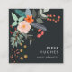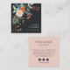 Affärskort med ljusare blommigt i ett unikt fyrkantigt format har en boho stil bouquet i korall- och grönt, accentuerad med en ludd och grön. Lägg till ditt namn och ditt företag namn eller titel/yrke i det nedre hörnet av högerna, mot en rik med svart bakgrund. Kort som går tillbaka till mörkens text på en kontrasterande rosa. Innehåller tre social-medieikoner och en fält för ditt användarnamn.