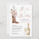 Boho Blommigt Glass Boot Bubly Inbjudningskort för möhippan Boots och bubbels möhippas duschinbjudan med en cowgirl-bock, härlig blommigt, modern kalligrafkurs och faux guld dots. Den här bruden och bubblan inbjudningskort för möhippan ligger i ett stil och har också ett champagneglas och flaska.